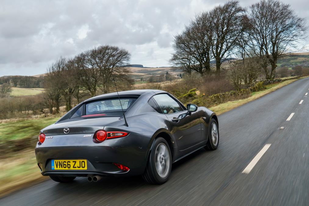 デヴォンの曇り空のもとで見ても、以前に晴れたスペインで見た姿と同じく、特別感はちゃんとある。3代目モデルとは違い、RFのプロポーションは標準のMX-5とは大きく異なる。RFのルーフ開閉機構はポルシェの911タルガと同じくらいよく考えられている。